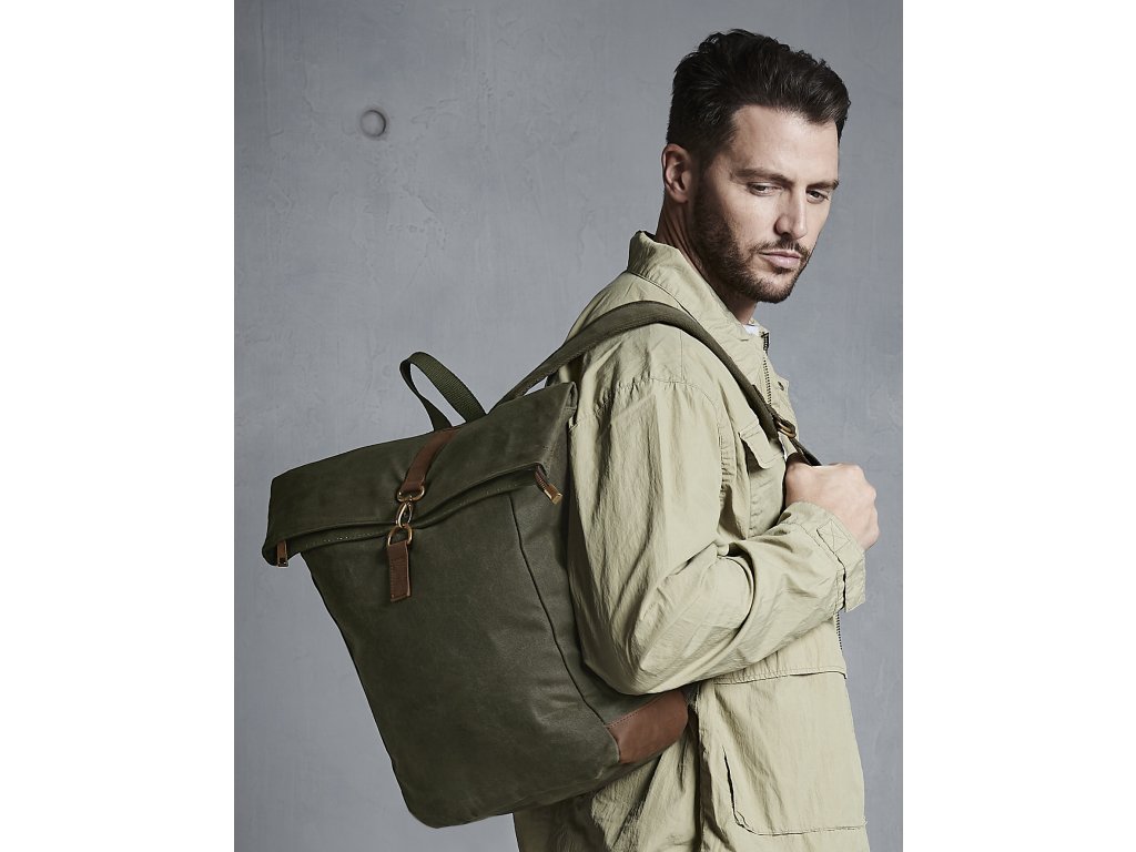 Vintage batoh ze 100% bavlny (voskovaný kanvas) s mosaznými a koženými detaily. Polstrovaná záda a nastavitelné ramenní popruhy vám zajistí pohodlné nošení. Hlavní kapsa je na zip pro notebook až do velikosti 15.6". Celý batoh uzavřete zapínací klopou, která mu dodá vintage vzhled.