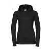 Mikina má dvouvrstvou kapuci, ploché stahovací šňůrky, výztužnou páska pásku za krkem s nápletem "rybí kostra", vývod na sluchátka, klokaní kapsu a průramky, manžety a lem se skrytými švy.