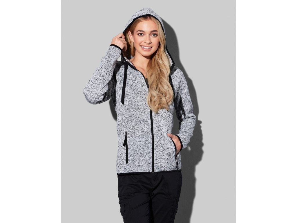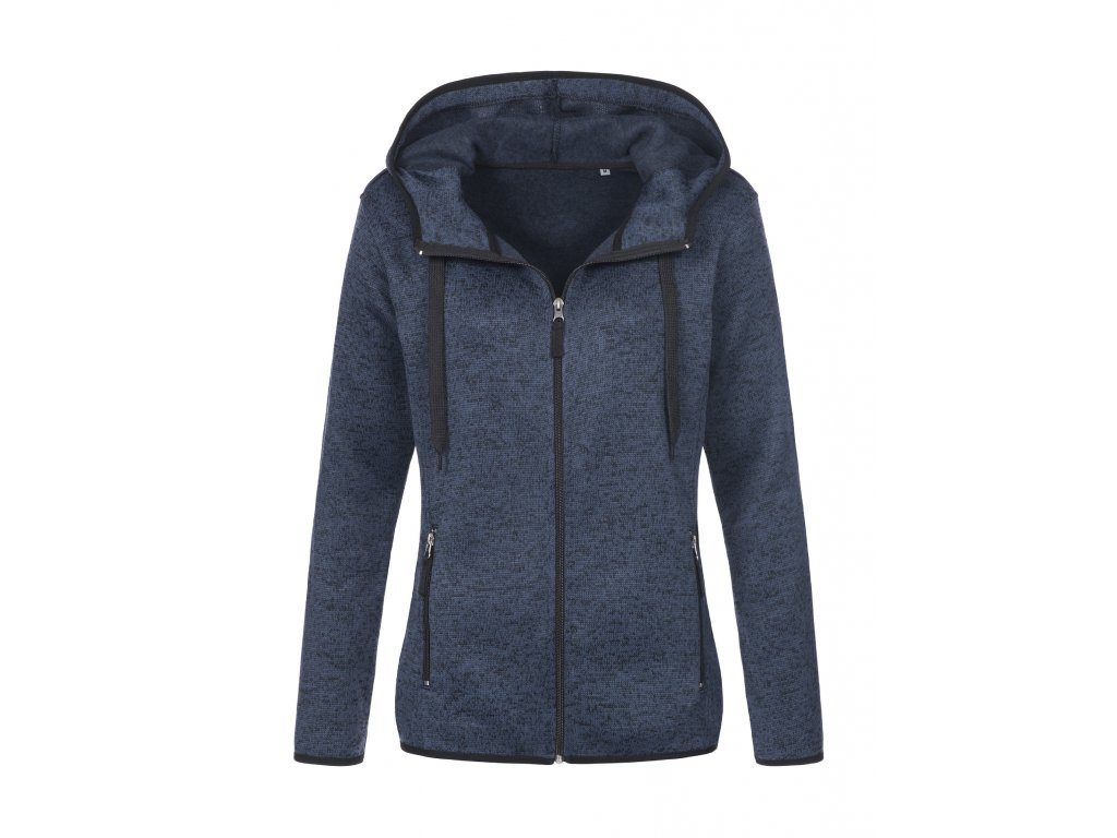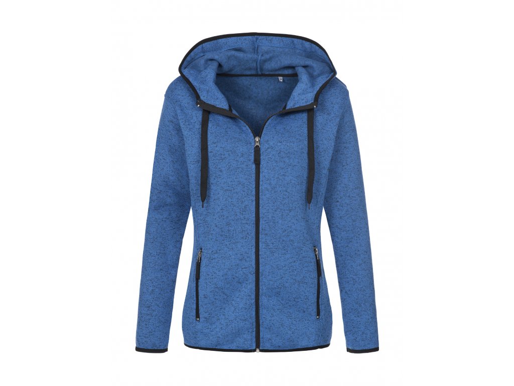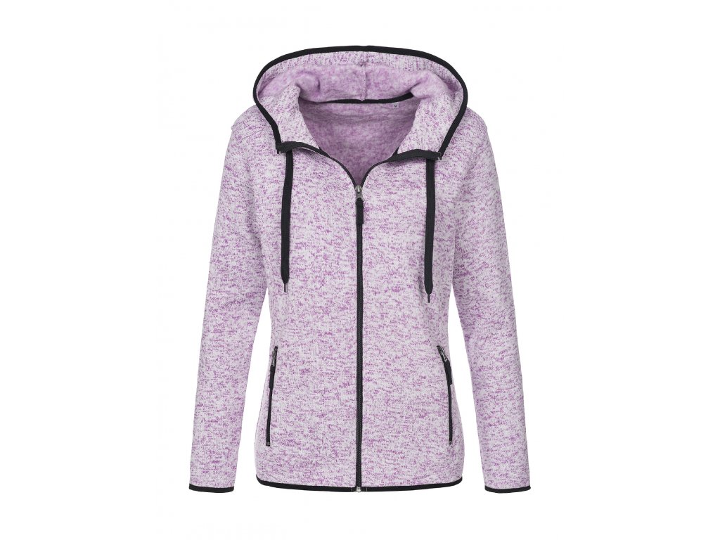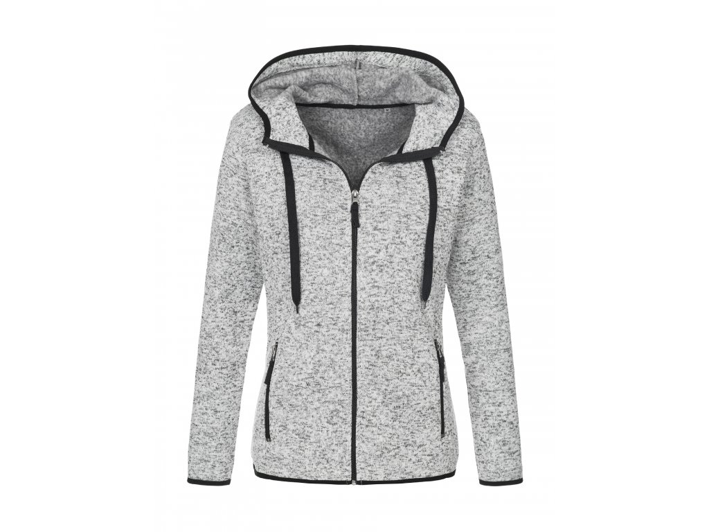 Dámská fleece pletená bunda je vyrobena ze 100% polyesteru (pletený fleece). Má pletený povrch a česaný vnitřek, kapuce s kontrastními šňůrkami, kovové zakončení šńůrek (bez niklu), kontrastní zip, 2 kapsy s kontrastním zipem a boční švy s postranními panely. klasický střih.