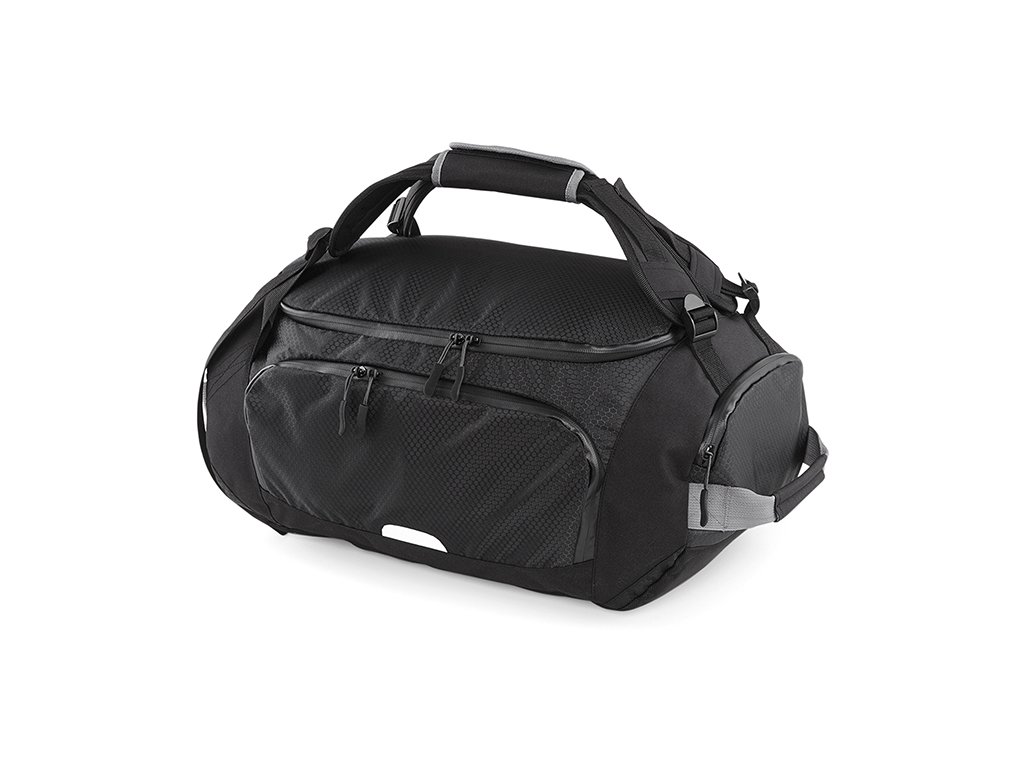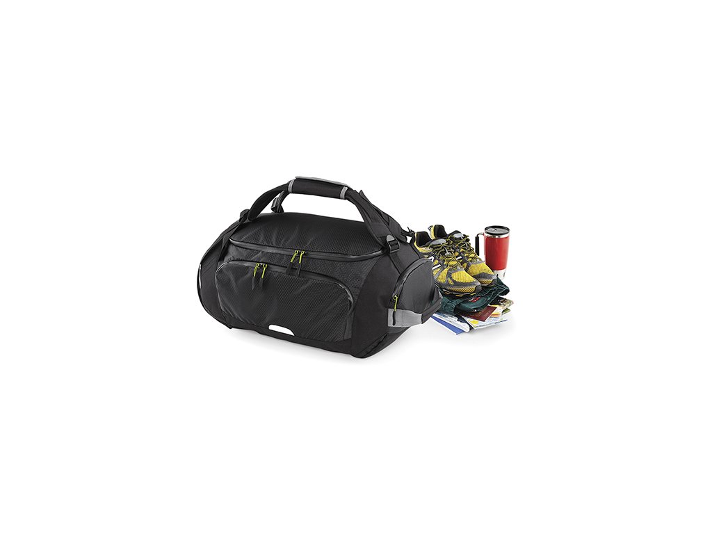 Praktická voděodolná taška černé barvy s nastavitelnými konvertibilní ramenními popruhy, díky kterým je možné tašku nosit jako batoh. Má velmi praktické místo na boty, které je oddělené od zbytku tašky.