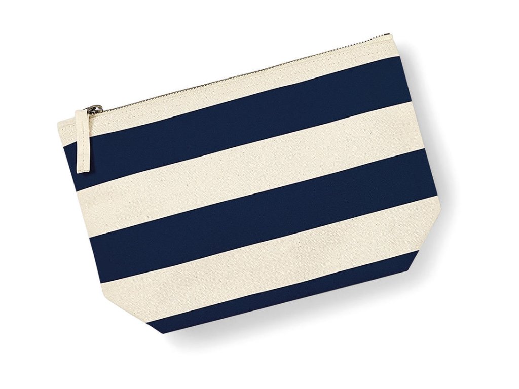 Praktická taštička na doplňky Nautical z velmi odolného materiálu. Díky pruhovanému vzoru je ideální pro zabalení doplňků a kosmetiky do letních dnů. Dostupná ve třech barevných variantách.