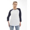 Unisex baseball tričko má 3/4 rukávy, kontrastní rukávy a pásek u krku, vyztužené švy za krkem a zakulacený spodní lem.